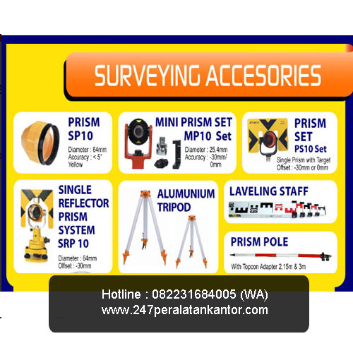 Selain menjual topcon total station, topcon digital theodolite, topcon gps, topcon waterpass/auto level, kami juga menjual accesoris alat survey/alat ukur , seperti :